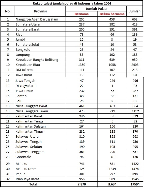 bupati/walikota, pada tahun 2004 menyatakan bahwa 7.870 pulau yang bernama,